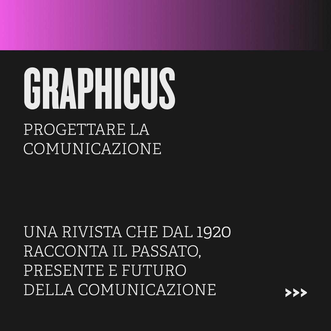 Graphicus, persegue l’intento storico della rivista di fornire un supporto culturale e professionale ai progettisti che devono affrontare le sfide della comunicazione, alla luce delle nuove tematiche e dei linguaggi del contemporaneo.