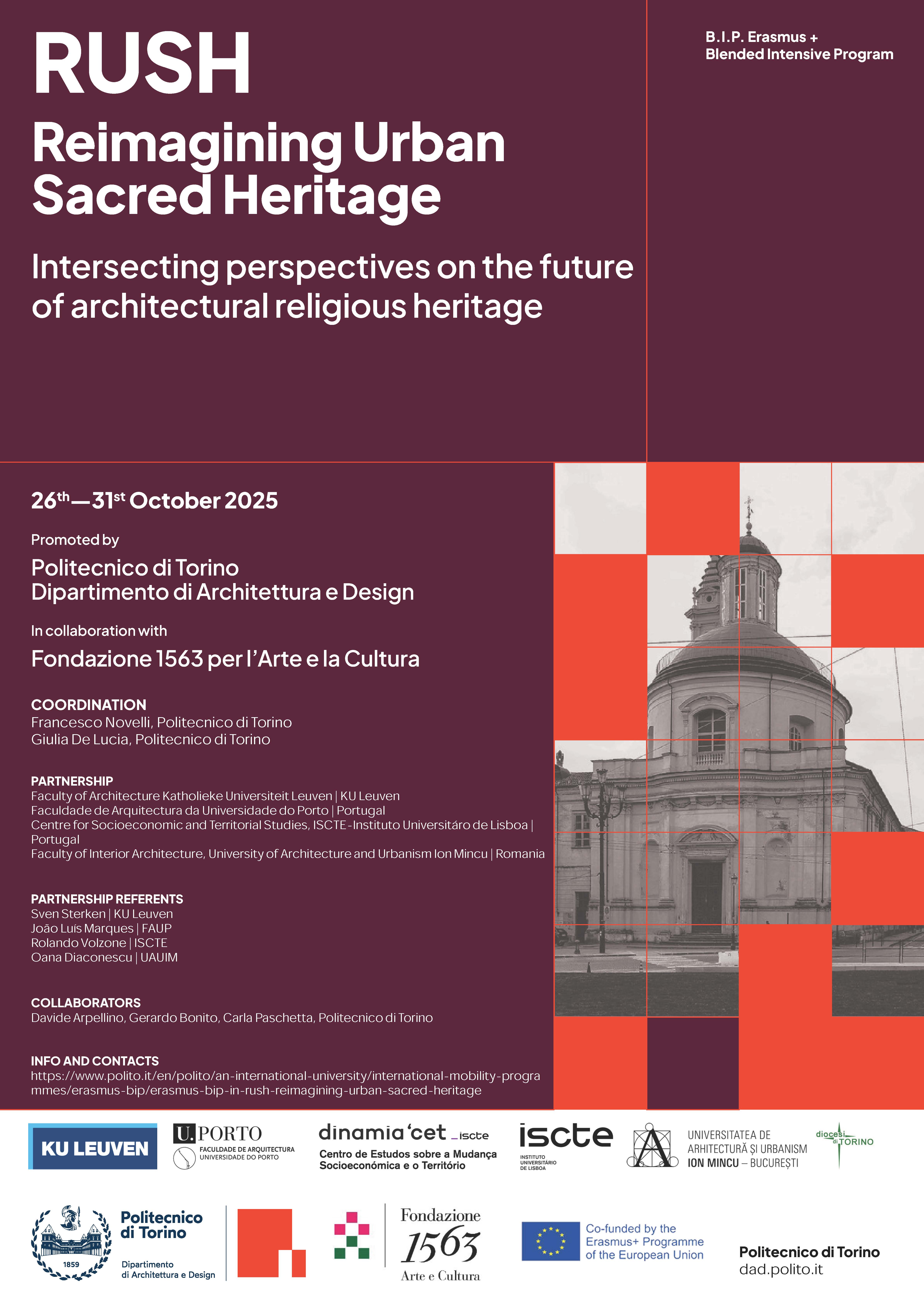 Prosegue l’impegno del Politecnico di Torino sui temi della valorizzazione e rigenerazione del patrimonio architettonico di interesse religioso del centro storico della città. RUSH è un programma BIP-Erasmus+ che porterà a Torino studenti da diverse università europee per confrontarsi sul futuro degli edifici religiosi e sulle potenzialità della loro rigenerazione.
