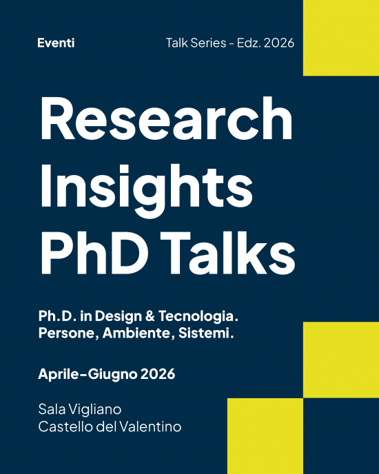 Prende il via la nuova serie di eventi “Research Insights – PhD Talks”, organizzata nell'ambito del Dottorato in “Design e Tecnologia. Persone, Ambiente, Sistemi”.